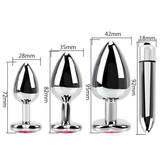 Stainless Steel Heart Shape 3 Sizes Crystal Plug Toy