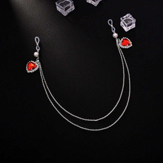 More Style Rhinestone Red Nipple Chain Non Pierced Body Jewelry