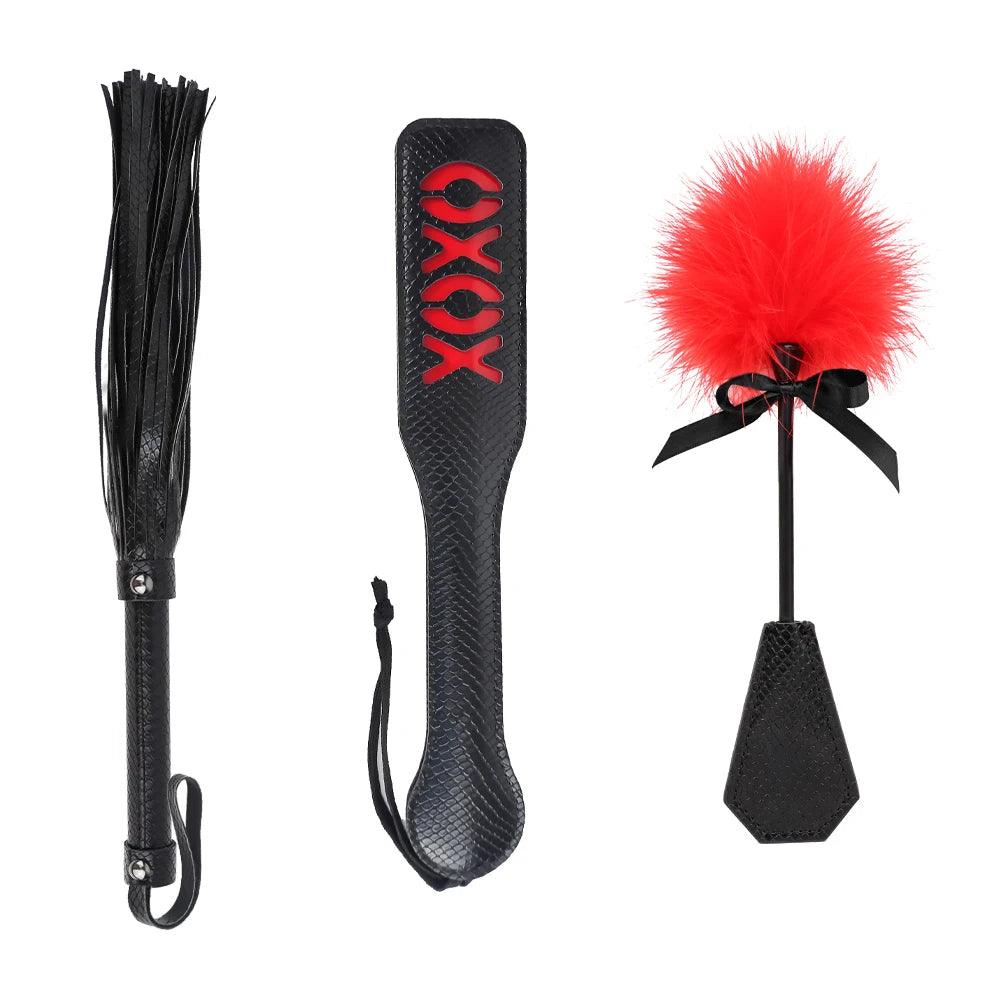 3 Pcs Bondage Set Imitation Snake Skin Spanking Whip Leather