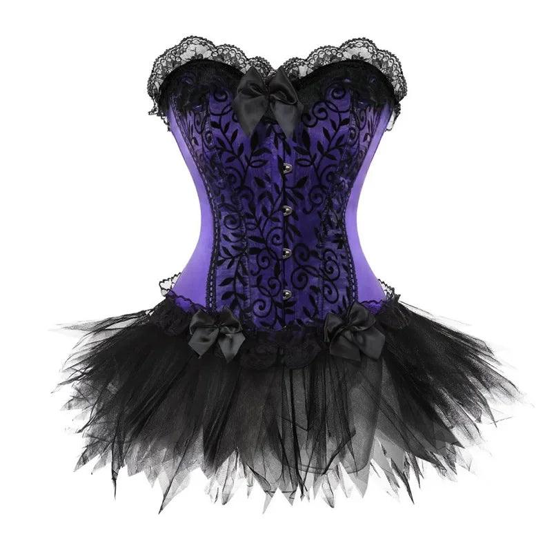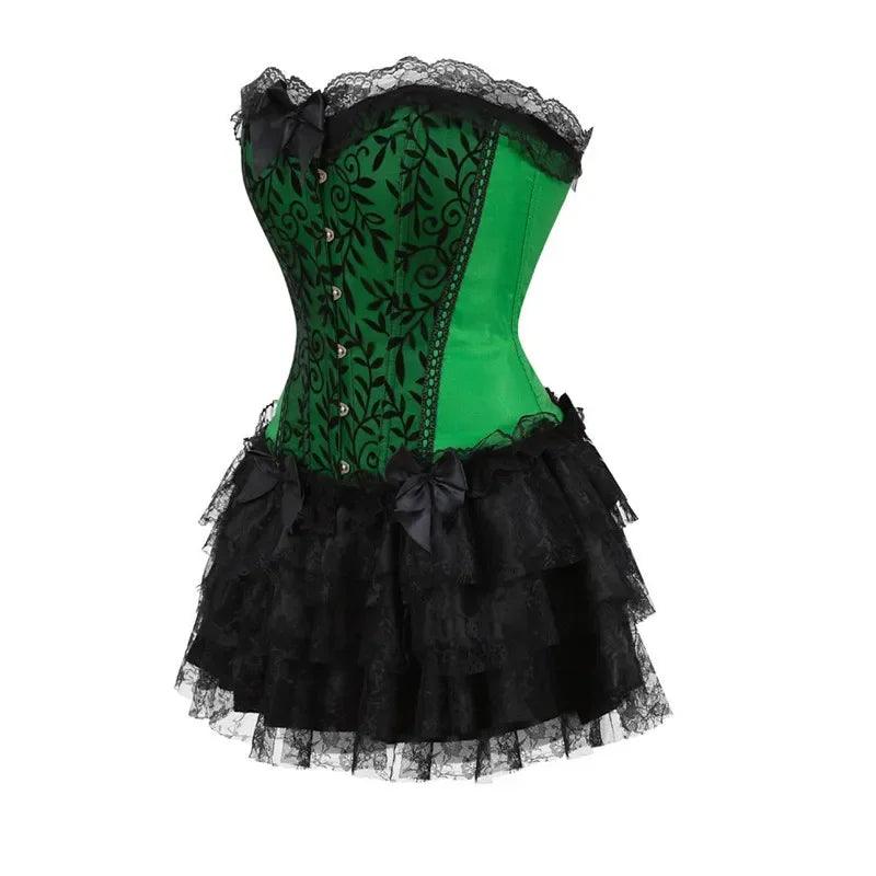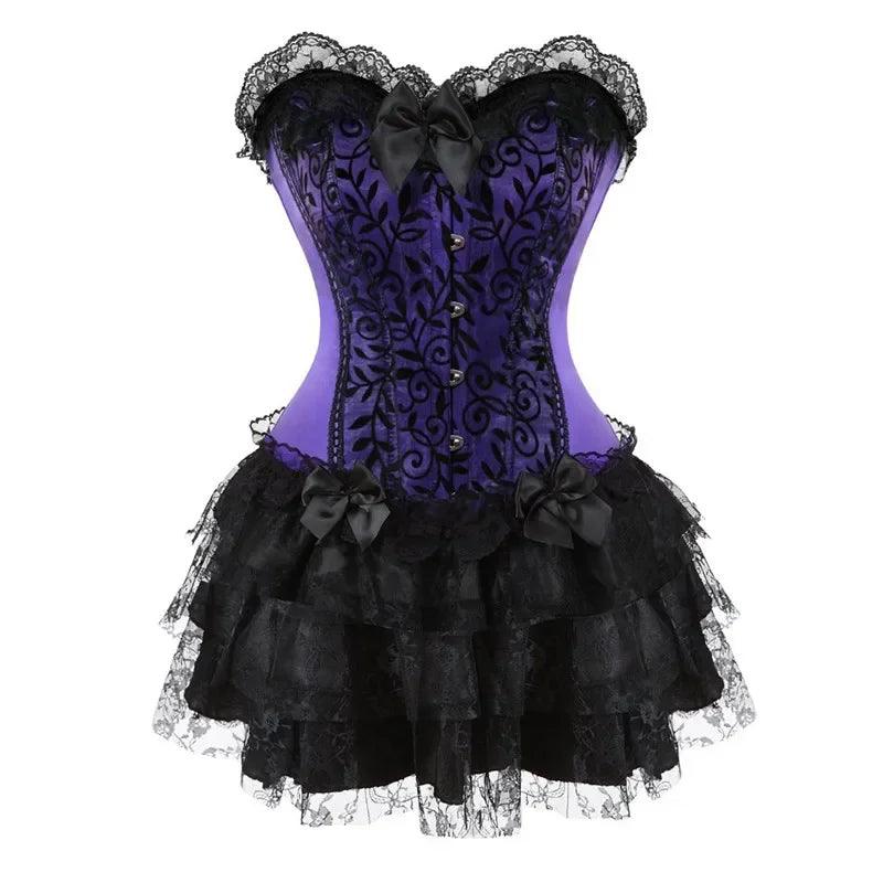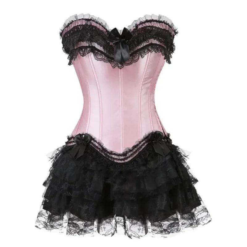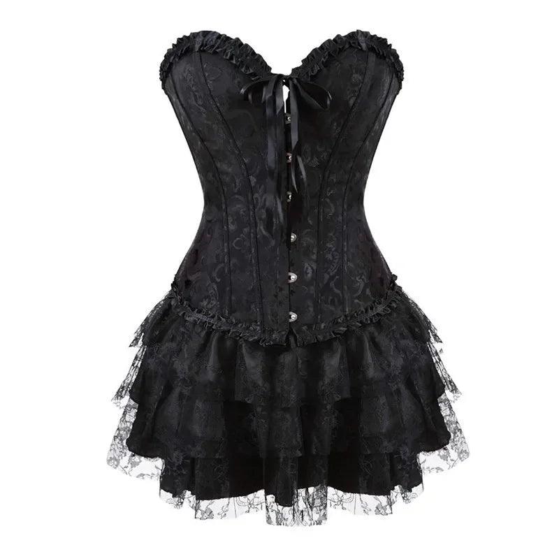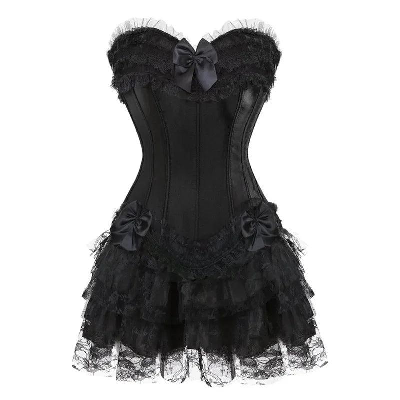 Corset Dress Bustier Overbust Skirts Top Set Women Gothic
