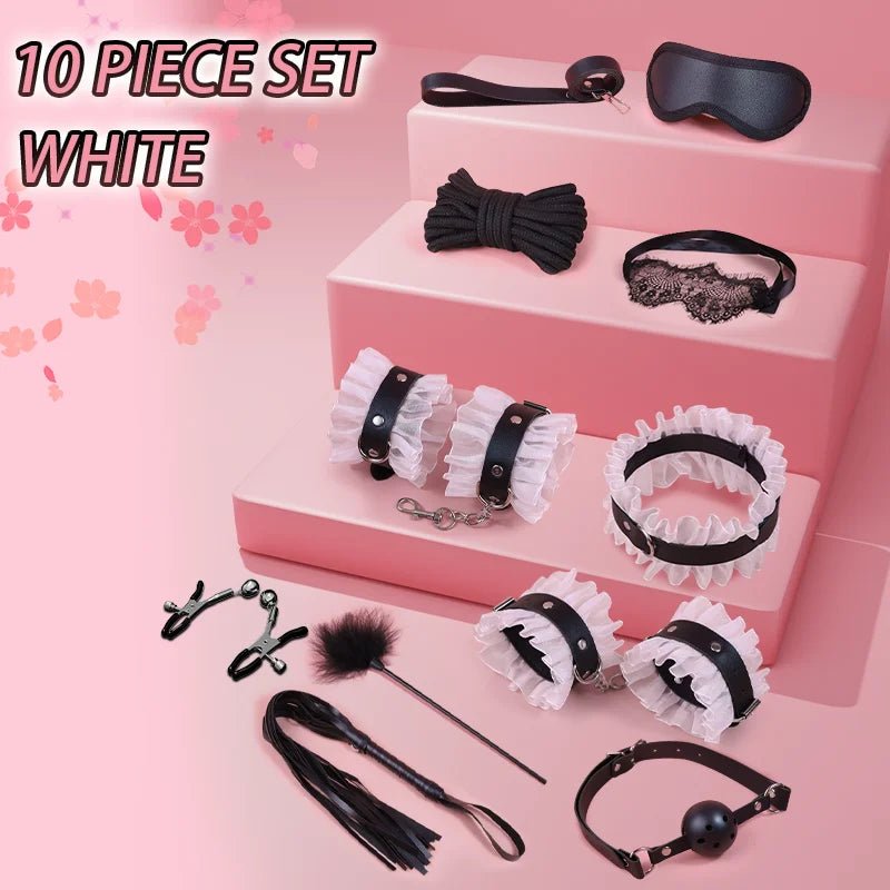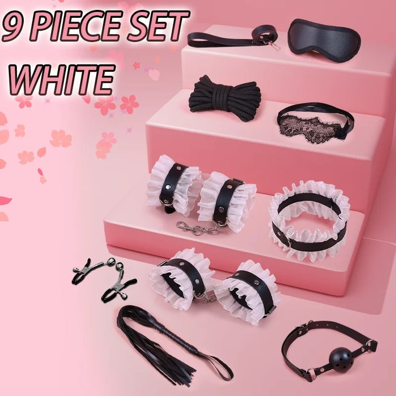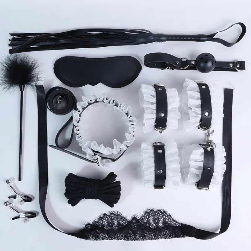 Explore the thrilling world of Sex Games Bondage Kits With Handcuffs Nipple Clamps Whip. This exquisite bondage kit is crafted for couples eager to delve into new realms of pleasure and intimacy. Each set includes high-quality handcuffs, nipple clamps, a whip, and an eye mask, perfect for igniting passion and trust.